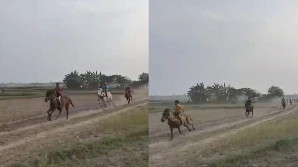 ফরিদপুরে আবহমান বাংলার ঘোড়দৌঁড় প্রতিযোগিতা দেখতে মানুষের ঢল