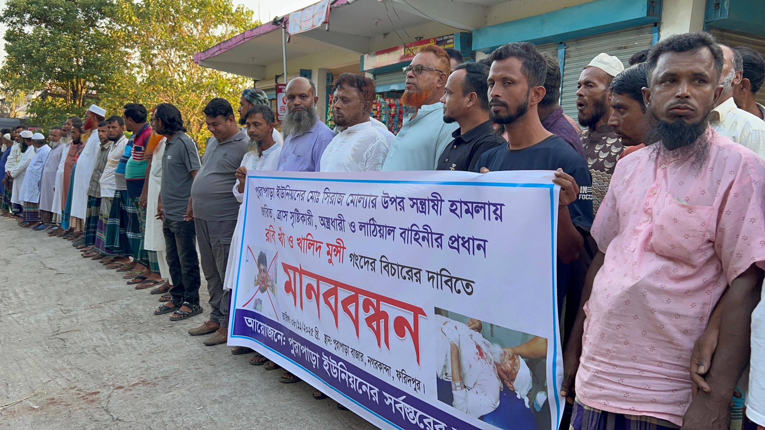 সাংবাদিক তুহিন হত্যার প্রতিবাদে সালথায় মানববন্ধন