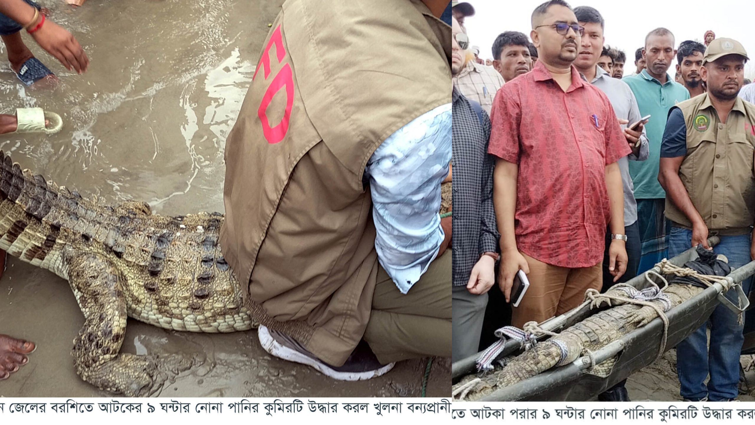 ফরিদপুরের পদ্মার সেই কুমির ৯ ঘণ্টা পর উদ্ধার, ফিরবে নোনা পানিতে